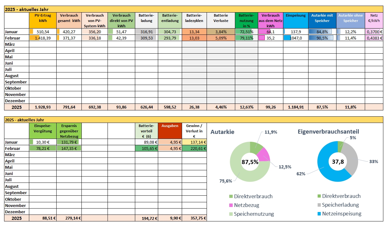 - Blatt EINGABE komplett neu erstellt als zentraler Ort zum Eingeben der laufenden Daten der PV und des Speichers